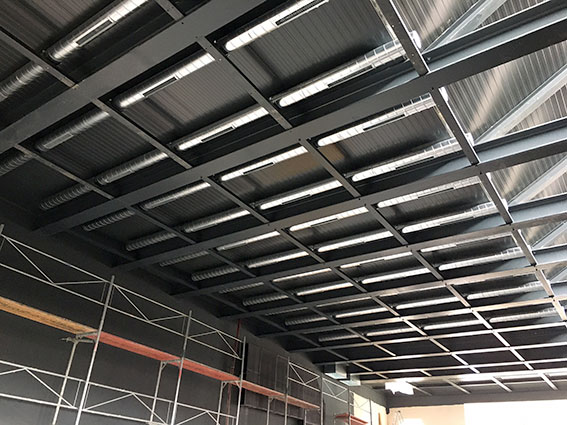 Lüftungskanäle für Zuluft und Abluft Fasslager aus Edelstahl in Bodenkollektor und der Hallen-Bodenplatte